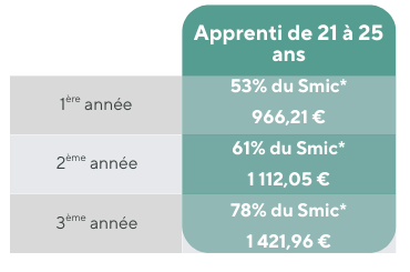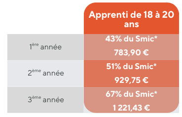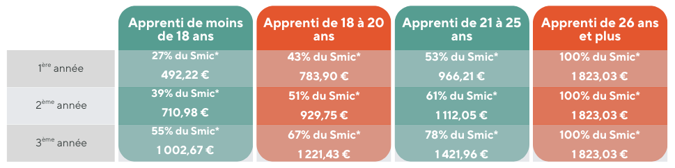 Voici les montants minimums (bruts) que tu peux toucher selon ton âge et ton année de formation 👇